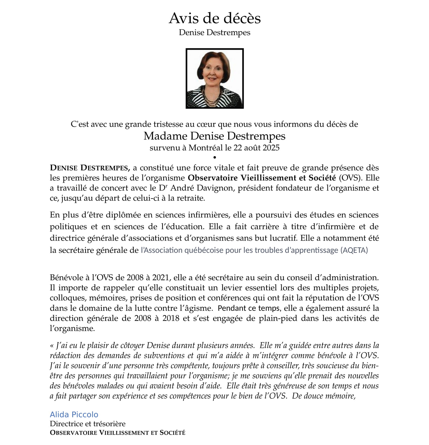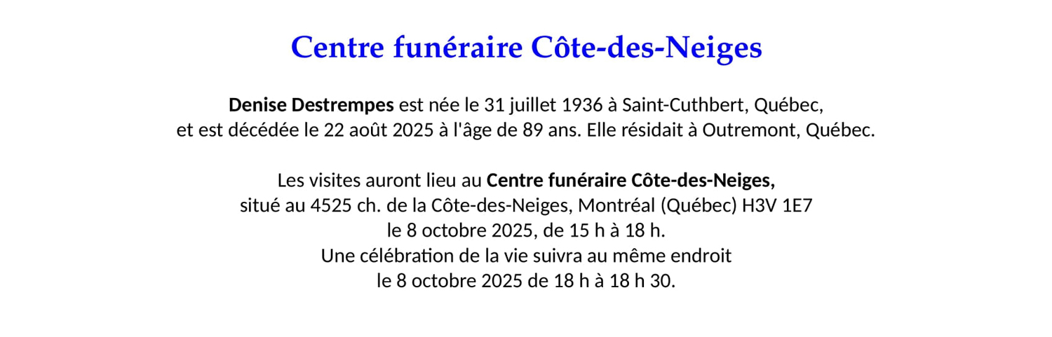 Avis de décès – Denise Destrempes